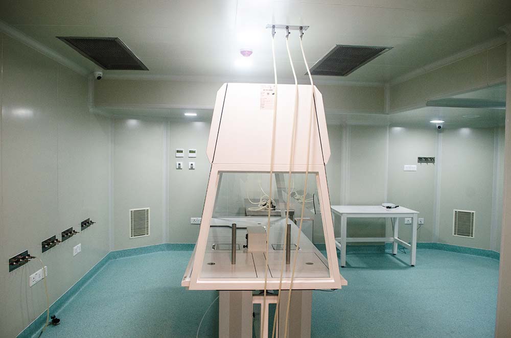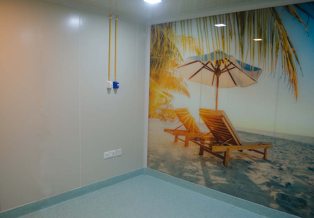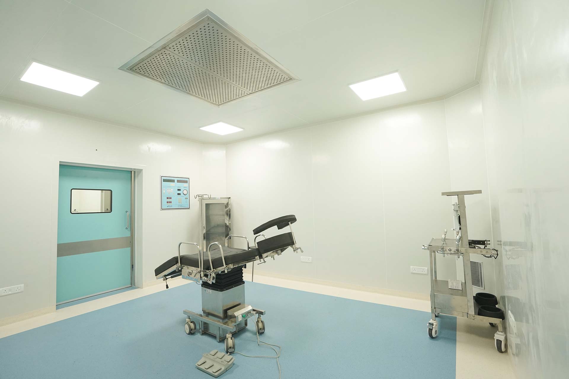 PPGI wall panelling in OT/ICU with the following Specification: Standard wall partitions with composite construction of two skins of PPGI/PPGI Over a GI/AL framework with a sealed & insulated interior. Standard panels shall have an overall thickness of 50mm. The self-supporting internal walls constructed with an interior GI / AL framework. Partition connections are maintained with precision with AL GI profiles that create uniform seams. The partitions seams are sealed by silicone with a perfectly flush finishing. PUF insulation material is sandwiched between skin layers & sealed from the exterior by the aluminium framework.